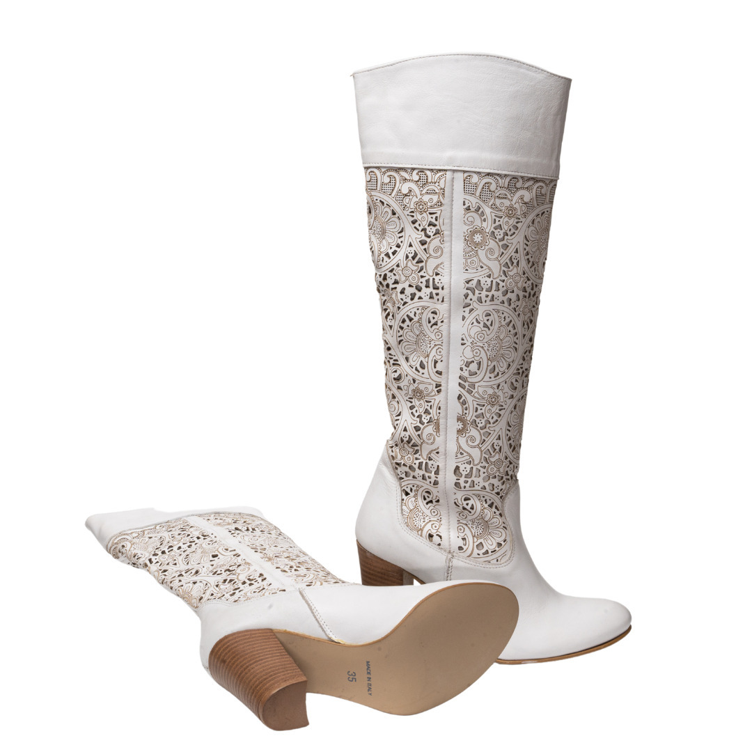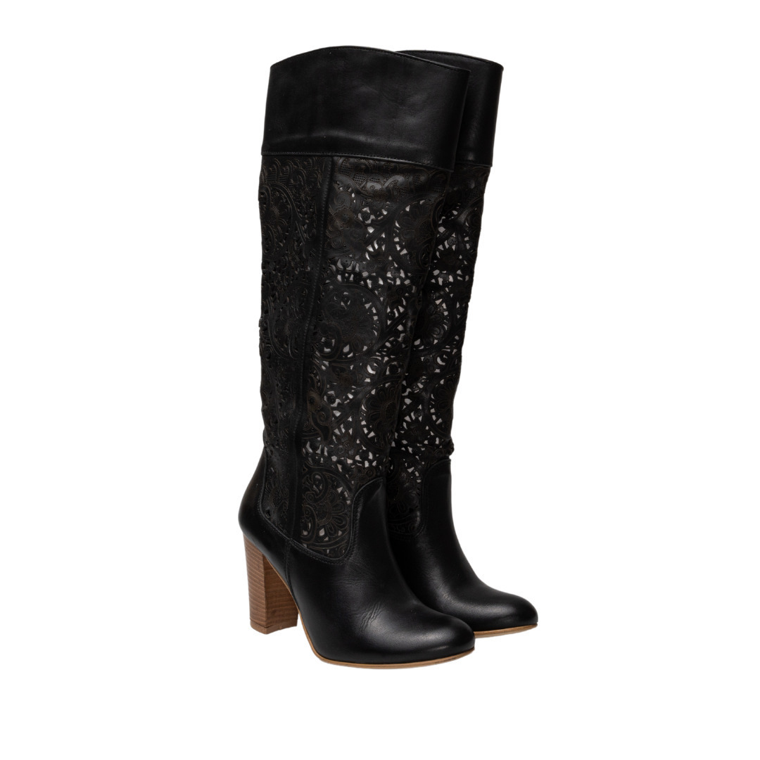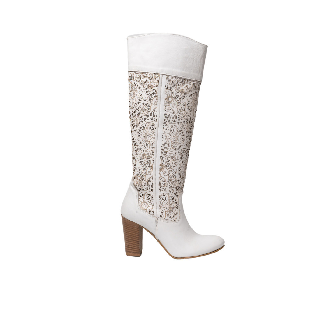 Bottes hautes pour femme en cuir de veau de fabrication artisanale